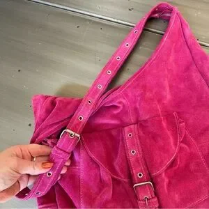 Jill Stuart Hot Pink Suede Slouch Purse Bag