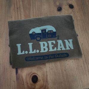 LL Bean Army Green Welcome to the Outside Camper T Shirt, Slightly Fitted. L
