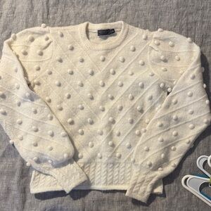 Vinny Vines winter white sweater with playful pom-pom details. Perfect for a cozy and chic look. Great holiday sweater. NWOT worn once