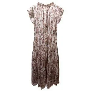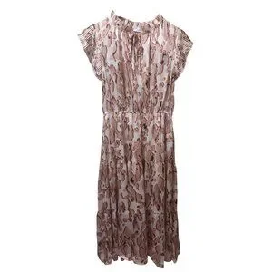 NWT Voy Brown/Cream Abstract Print Midi Dress Size SMALL