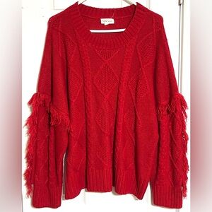 Elegant Red Fringed Knit Sweater