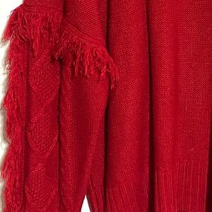 Elevate your style with this elegant red fringed knit sweater. Perfect for any occasion, it adds a vibrant touch to your wardrobe.