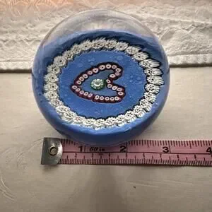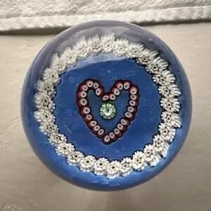 VTG Paul Ysart Scotland Art Glass Millefiori Heart & Garland Paperweight