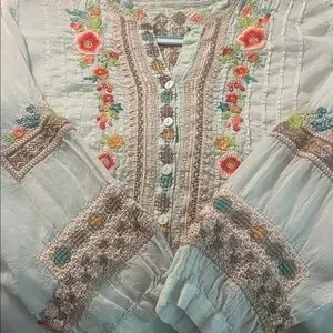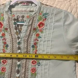 Johnny Was Pastel Blue Embroidered Blouse