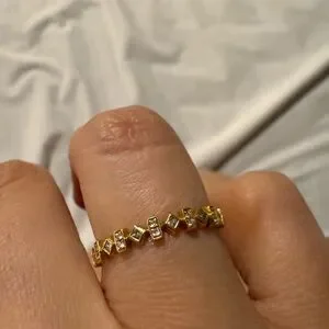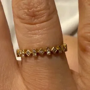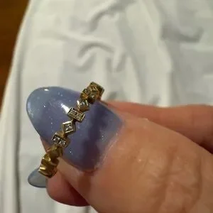 Good used condition. Normal wear on band, see photos. Diamonds do not go all the way around. Size 6.5. 18k gold. .10 ct of diamonds.