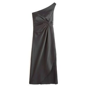 NWT Abercrombie & Fitch One Shoulder Knotted Satin Midi Dress Wedding Guest LBD