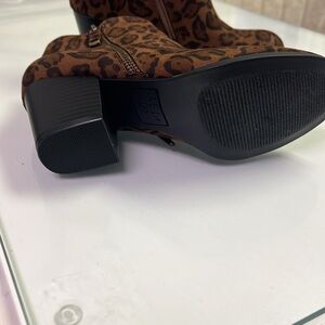 Step out in style with these chic leopard print ankle boots. Perfect for adding a bold touch to any outfit.