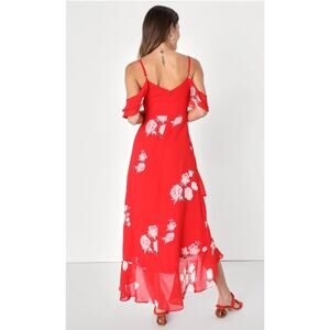 Lulus Love in Bloom Red Floral Print Off the Shoulder High Low Dress Size S New