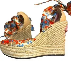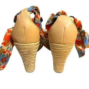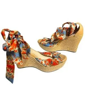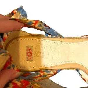 UGG Australia wedges Luciana espadrille orange blue silk ankle wrap heels size 8
