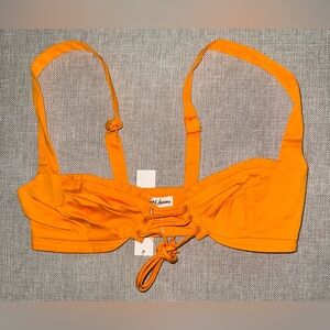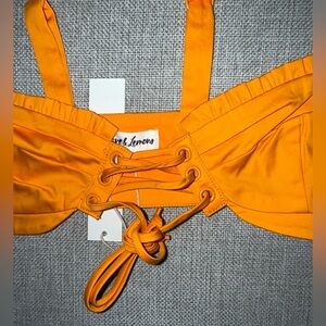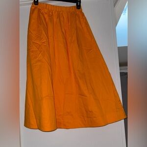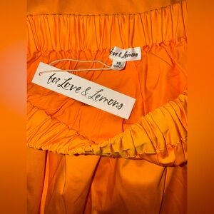 The For Love & Lemons Clementine Midi Skirt in orange is a dreamy poplin midi skirt featuring side pockets. Made from LENZING™ ECOVERO™ fibers. Pair with the matching top, the For Love & Lemons Clementine Bra Top.