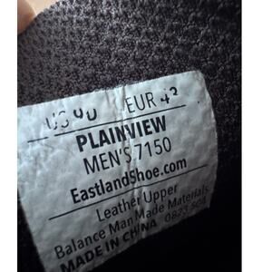 Excellent quality men’s brown oxfords by Eastland, style name Plainview. Size 9D (US), EU 42. Made in China with durable leather uppers and clean man-made lining and sole. Classic lace-up design, comfortable for daily wear or work. Shoes show minor signs of use including slight creasing on the toe box, overall great condition with solid construction and stitching. Clean inside and out, ready to wear. See photos for exact condition and details. Perfect for someone looking for reliable comfort and simple style.