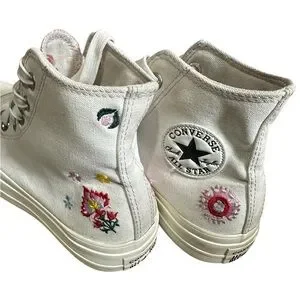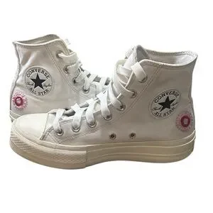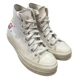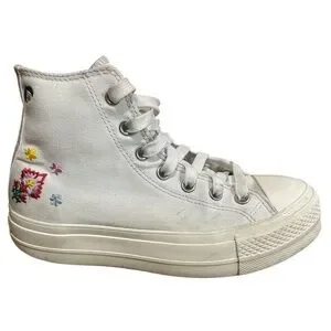 CONVERSE Chuck Taylor All Star Lift Platform Sneakers Floral Embroidery Sz 7.5