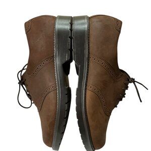 This pair of pre-owned Dockers men’s brown oxfords is in excellent used condition, with no signs of stains, scuffs, or heel drag. They are classic, dependable, and designed for comfort, making them a versatile addition to any wardrobe. Crafted with a genuine leather upper and a durable non-slip rubber sole, the shoes feature a wingtip-inspired perforated design, a lace-up closure, and a padded insole for all-day support. Please take a look at the photos and feel free to ask any questions.