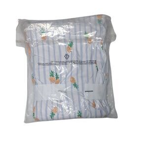 Cozy up in this brand-new pajama set, perfect for lounging or sleeping in style. The set includes a soft orange short-sleeve tee paired with lightweight striped pajama pants featuring a fun pineapple print. Made for comfort with a relaxed fit and breathable fabric. Size Medium Long for a comfortable and flattering fit.