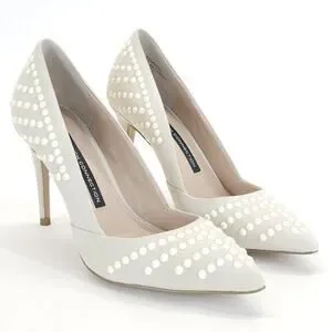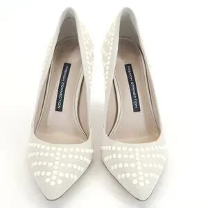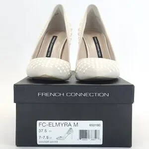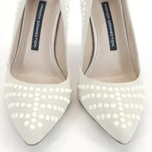 French Connection Elmyra Heel 7-7.5M Leather Cream/Winter White Pumps Studded Formal Bridal Cocktail