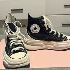 Elevate your look with these Converse platform sneakers. Classic black and white design. Perfect for casual wear. Worn once