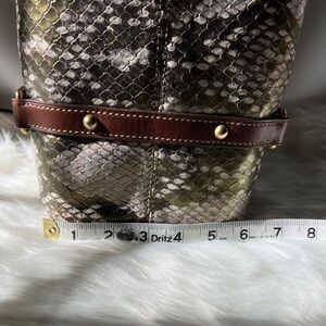Beautifully textured snake embossed leather with shades of olive green and taupe/grey.