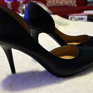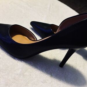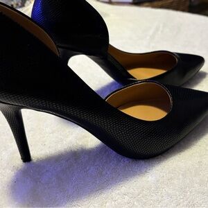Chic black heels with a textured finish. Elegant design by Jessica Simpson. Perfect for any occasion.
