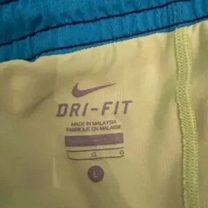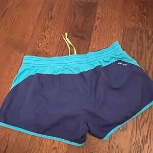 Experience comfort with Nike's navy shorts featuring lime accents. Ideal for active wear.ln Like-new condition