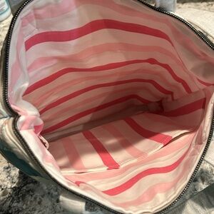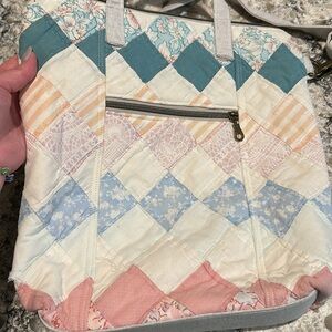 Chic and versatile patchwork tote bag featuring a blend of pastel colors from a vintage quilt; used in great condition (minus obvious wear from fabric being vintage)