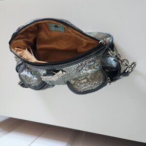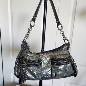 Vintage Kathy Van Zeeland Studded Metalic Pewter Bag Purse