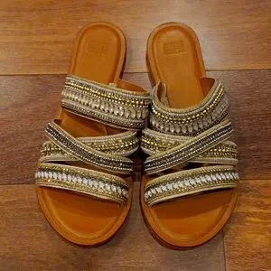 Anthropologie Jasper & Jeera Azille Beaded Leather Slides Sandals size 39