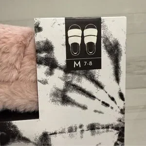 Cozy Pink Fluffy Side Slippers Slingback Girly Luxe Coquette Medium 7-8