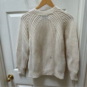 Everlane white cream wool fisherman sweater crew ribbed