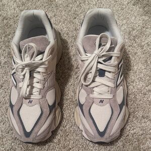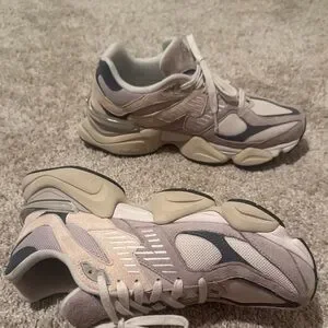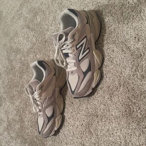Sleek New Balance sneakers with a beige and gray color scheme. Perfect for everyday wear. Perfect condition