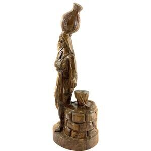 Hand Carved Olive Wood Figurine Woman with Water Jug at Well Folk Art 10.5”