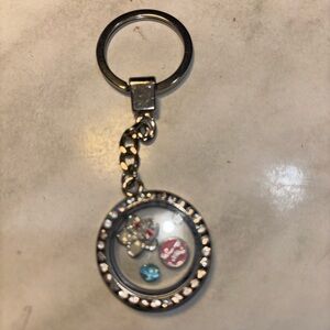 Silver and Pink Keychain with Charms memory charm locket, happy birthday theme 🎂
