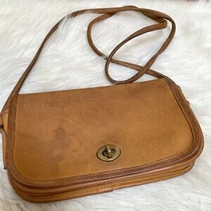 COACH Small USA Vintage Honey Brown Leather Turnlock XBody DINKY BAG #9375