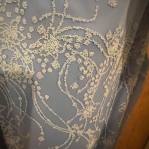 Beautiful vintage Y2K baby blue mesh Byer Too dress. Beaded floral pattern. Very stretchy and comfortable.