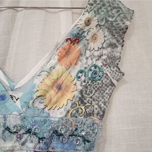 Goa Wild Daisy Print Y2K Top with Embroidery