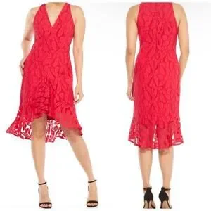 Maggy London Red Lace Sleeveless V-Neck Cocktail Dress Size 2