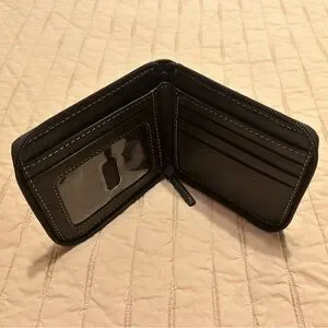 Sleek and stylish black leather wallet for men. Perfect for everyday use.