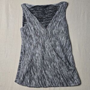 BCBG Maxazria Tank Top Blouse Womens XSGrey Black Wrap V Neck Sleeveless