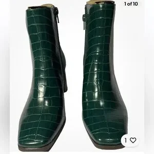 INC Womens Dasha Green Leather Ankle Booties Shoes 5.5 Medium Great Holiday Boot