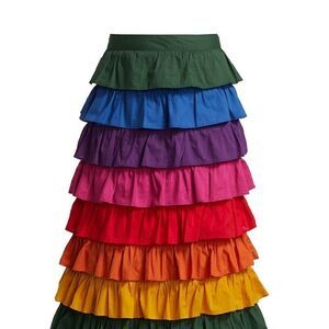 FARM Rio Color Blocked Tiered Midi Skirt