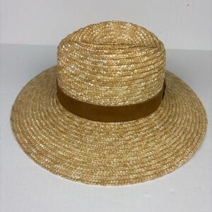 Gigi Pip Island Women’s Straw Woven Fedora Hat Suede Band Beach Sun Headwear