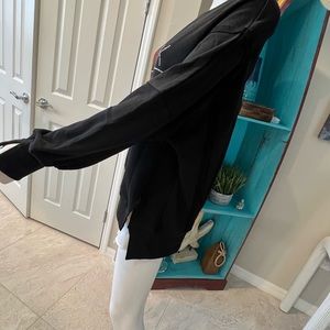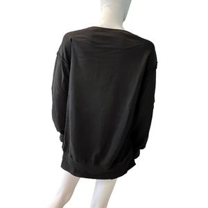 Top is high low with raw seam detail, side splits, and splits at wrists