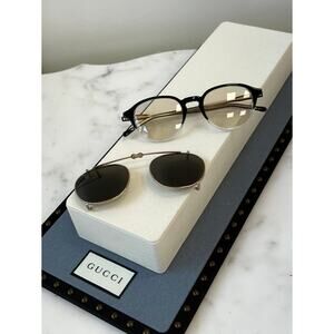 NEW Gucci GG1212S Clip On Rounded Eyeglasses + Sunglasses