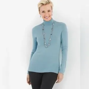 Chicos Womens Blue Turtleneck Sweater Size Medium Coolmax Technology NWT