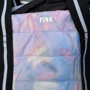 Chic and colorful travel bag by PINK Victoria's Secret. Features a pastel design with sturdy black straps. Perfect for travel and daily use.