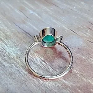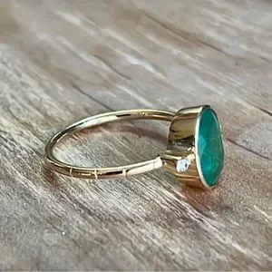 18KT Yellow Gold hallmarked oval Colombian emerald ring with two diamonds NEW