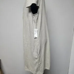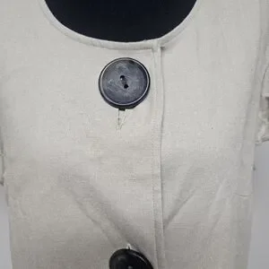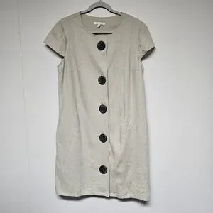 Tash & Sophie Linen Blend Lagenlook Dress Buttons Pockets Cap Sleeves Neutral