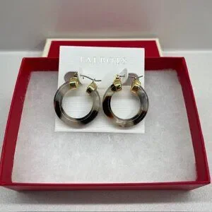 Talbots Tortoise Color Hoop Earrings with Gold Tone Accents from Talbots for pierced ears. New, never worn with original tags and a gift box included.