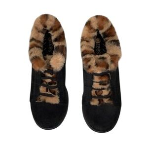 Stylish black sneakers with cozy faux fur trim. Perfect for casual outings.
