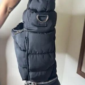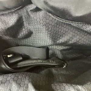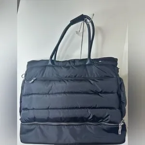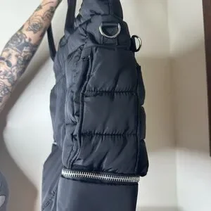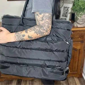 Stylish black quilted tote bag with zipper details. Perfect for everyday use.