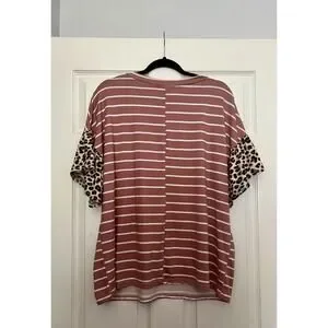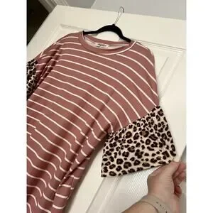 Haptics Women’s Striped Top With Leopard Print Sleeves Size Large